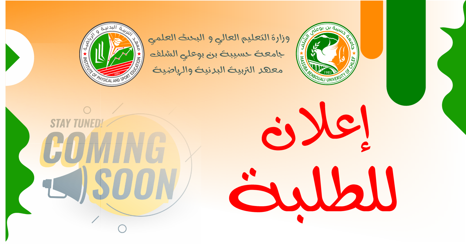 نعلم طلبتنا الاعزاء لسنوات النهائية (السنة الثالثة ليسانس -السنة الثانية ماستر) بمعهد التربية البدنية والرياضية المسجلين في اطار مذكرة تخرج مؤسسة اقتصادية .انهم مدعون لأجراء المقابلة الشفوية يوم الاثنين 16مارس2026 على الساعة 9:30صباحا بقاعة الإجتماعات(مكتبة المعهد الطابق العلوي).