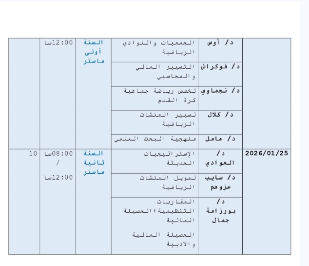 جدول التوقيت السداسي الثاني 2025-2026