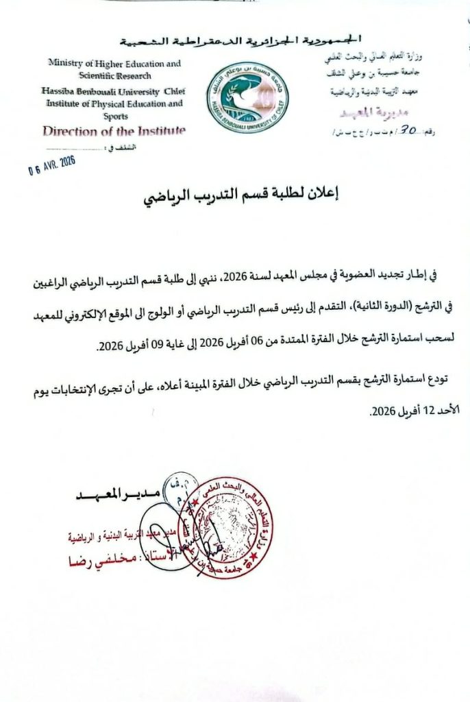 اعلان لطلبة قسم التدريب الرياضي