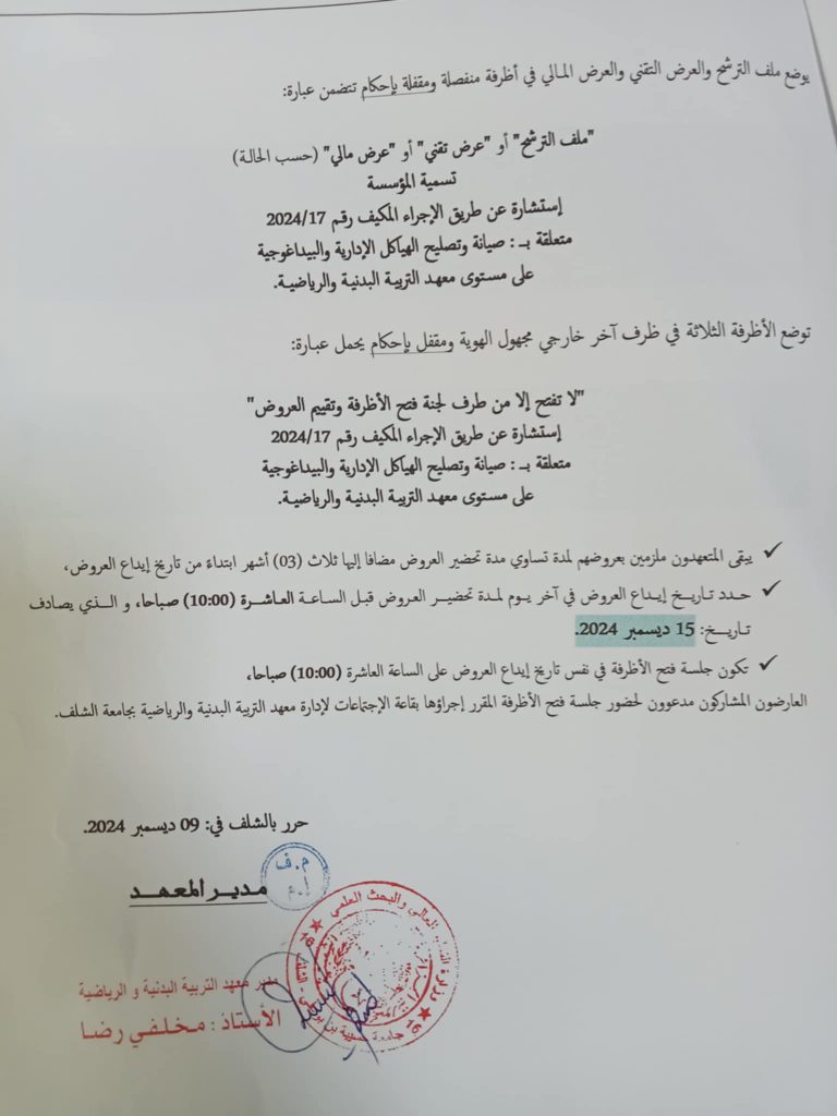 اعلان عن استشارة رقم 2024/17 عن طريق الاجراء المكيف