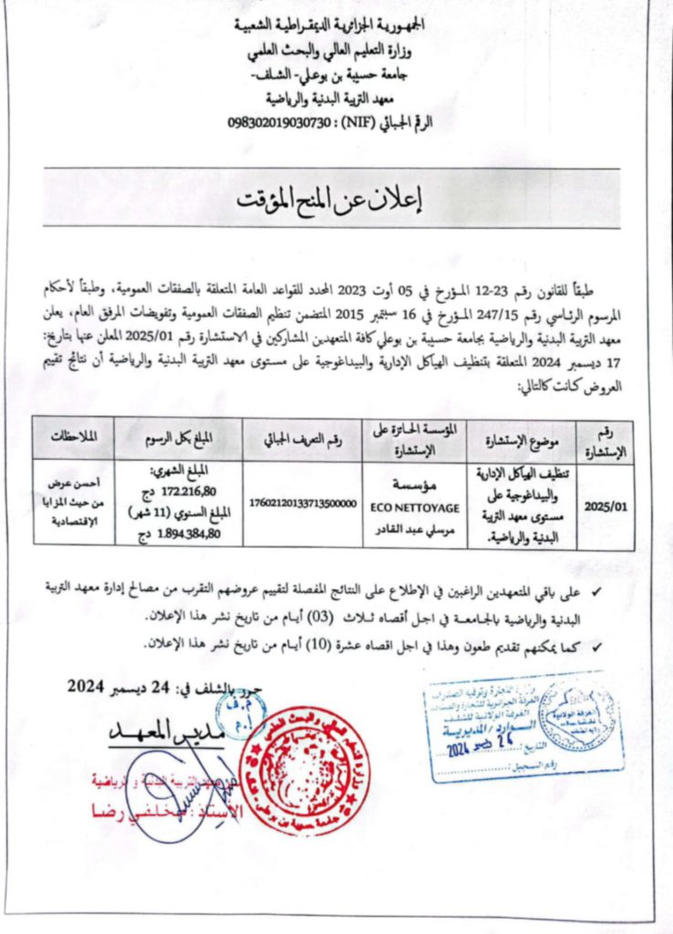 اعلان عن منح مؤقت (استشارة رقم 2025/01)