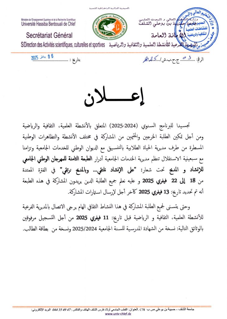 الطبعة الثامنة للمهرجان الوطني للانشاد والمديح