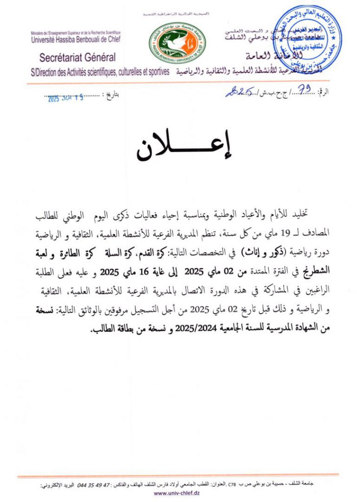 دورة رياضية في كرة القدم ، كرة السلة ، كرة الطائرة و لعبة الشطرنج