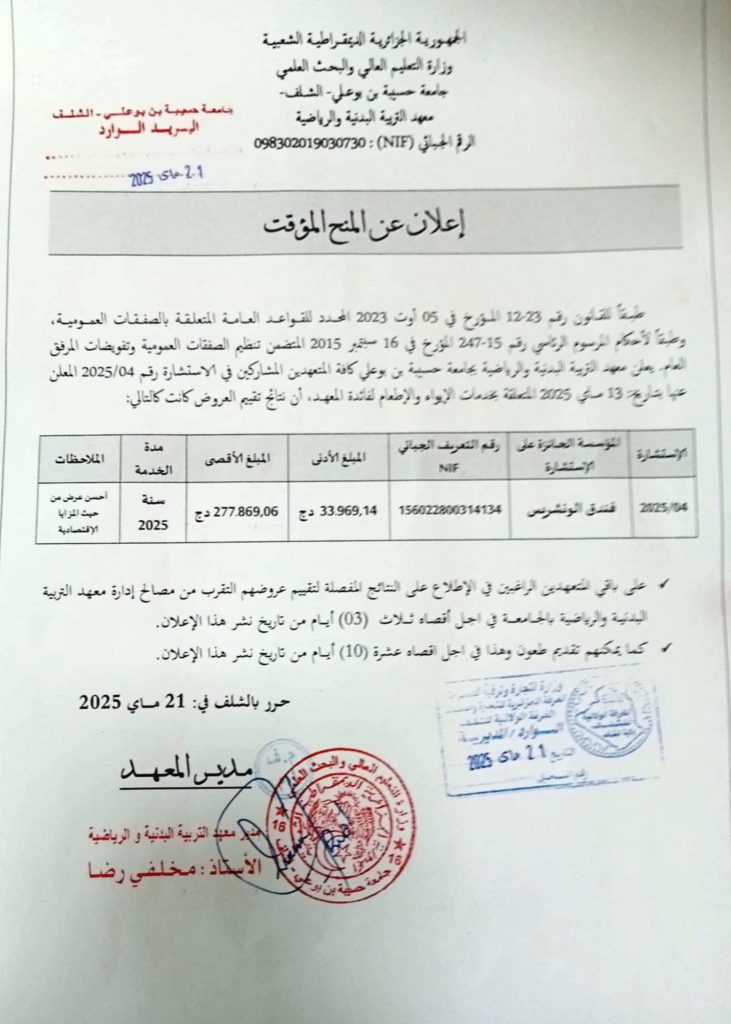 اعلان عن منح مؤقت (استشارة رقم 2025/04)