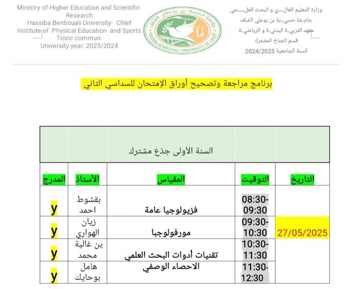 معاينة أوراق الامتحانات الخاصة بالسداسي الثاني قسم الجذع المشترك