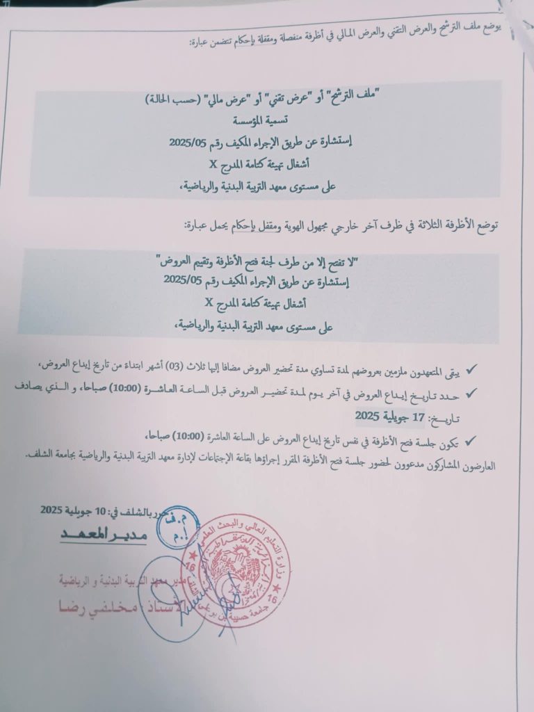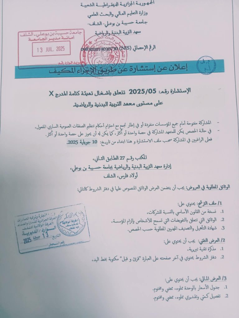 اعلان عن استشارة رقم 2025/05 عن طريق الاجراء المكيف