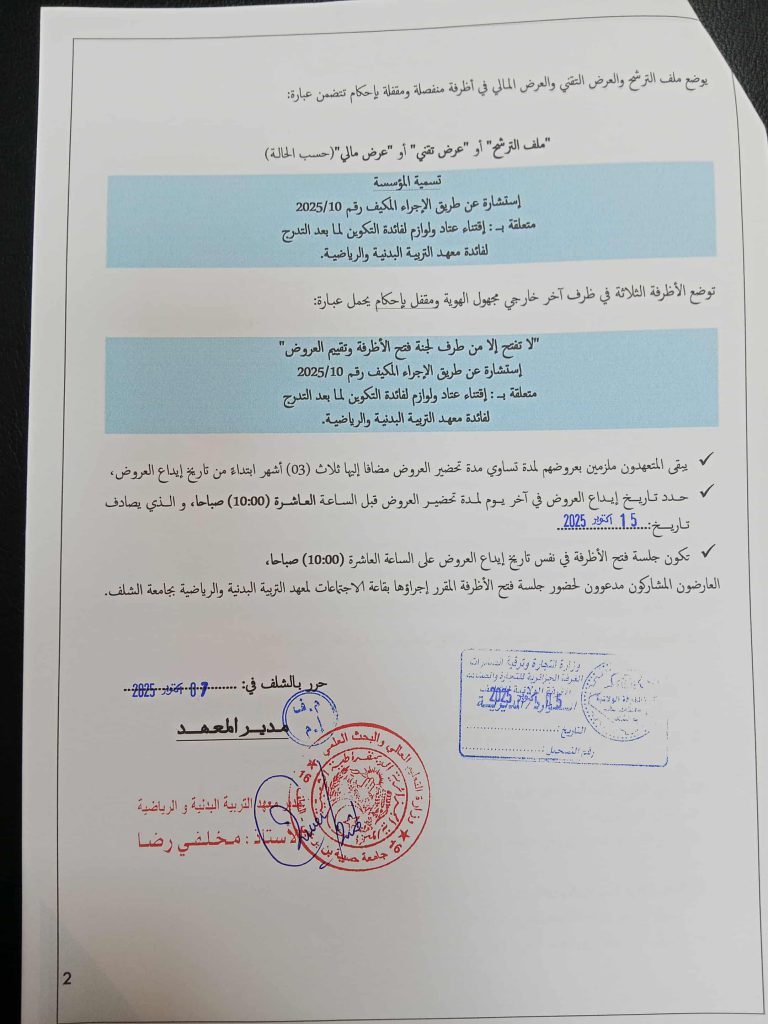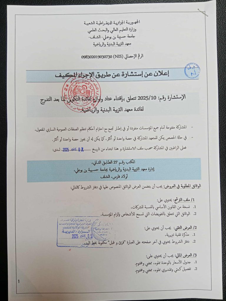 اعلان عن استشارة رقم 2025/10 عن طريق الاجراء المكيف