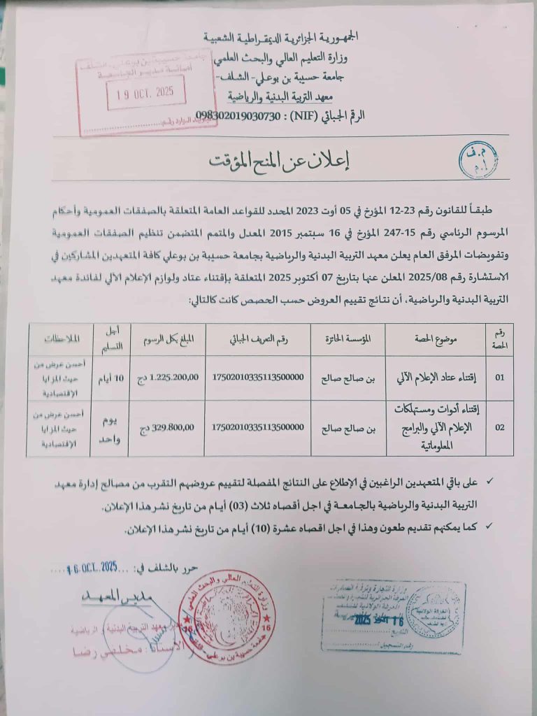 اعلان عن منح مؤقت (استشارة رقم 2025/08)