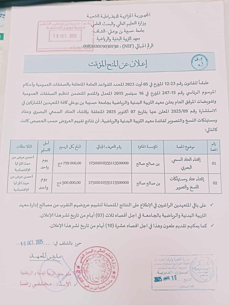 اعلان عن منح مؤقت (استشارة رقم 2025/09)