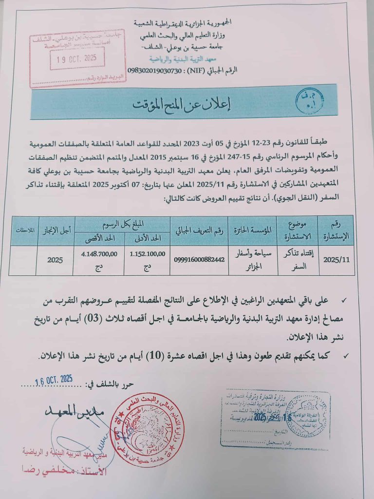 اعلان عن منح مؤقت (استشارة رقم 2025/11)