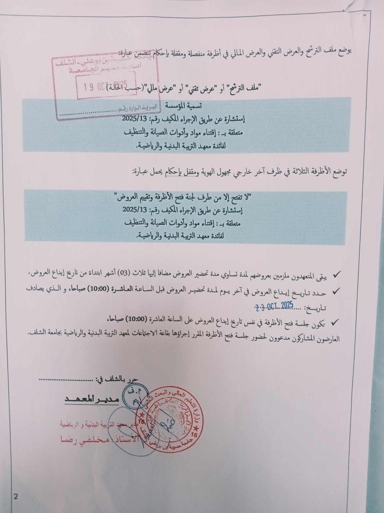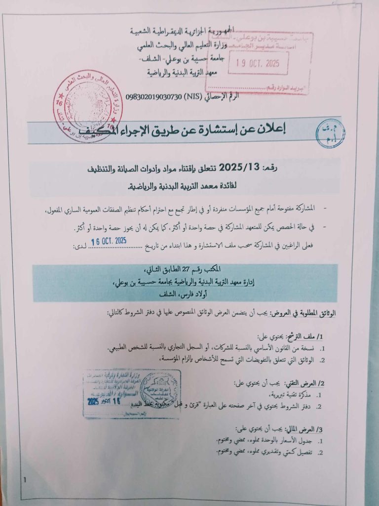 اعلان عن استشارة رقم 2025/13طريق الاجراء المكيف