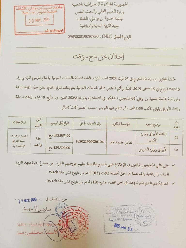 اعلان عن منح مؤقت (استشارة رقم 2025/14)