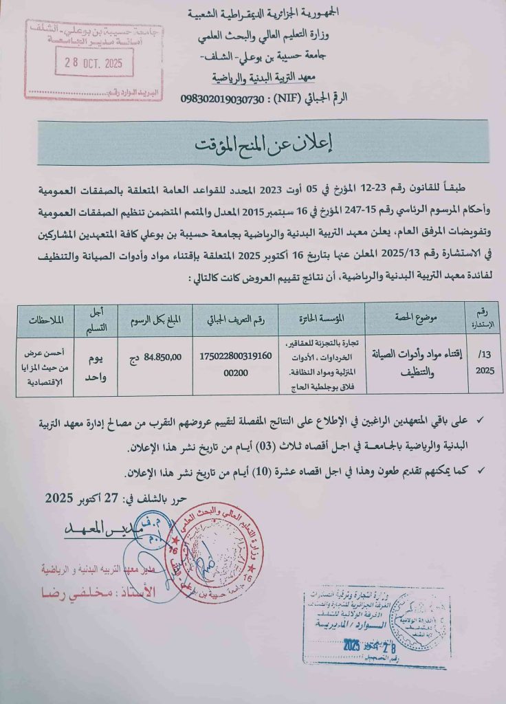 اعلان عن منح مؤقت (استشارة رقم 2025/15)