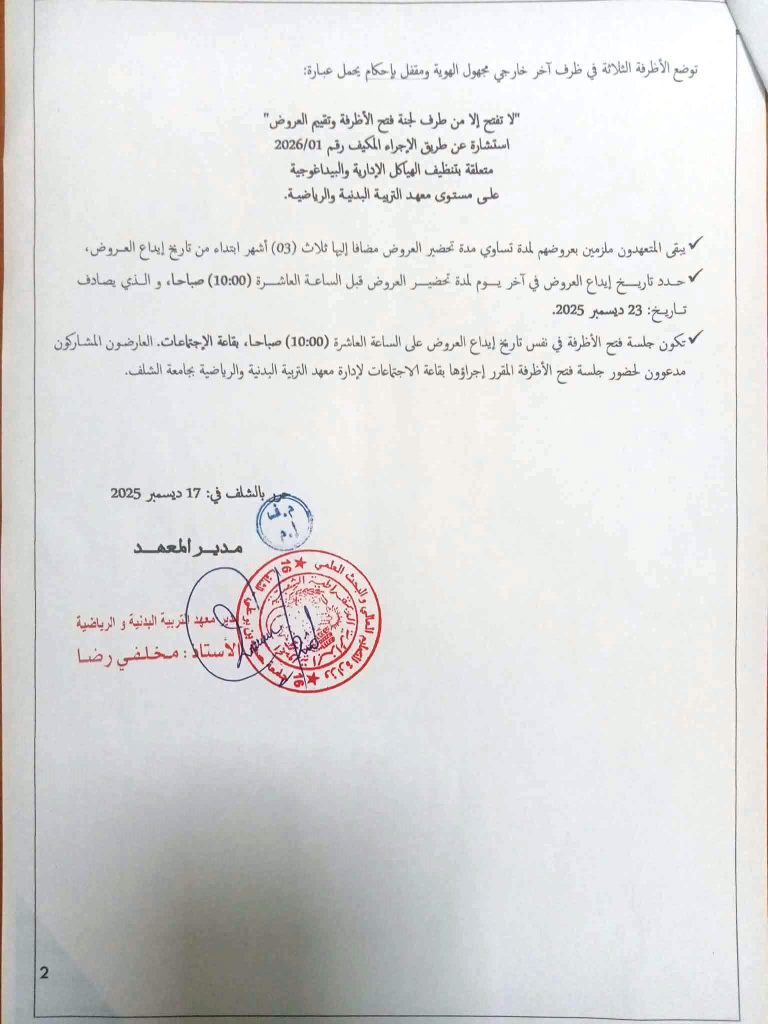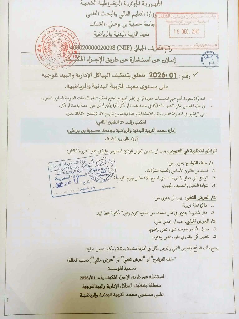 إعلان هـام لطلبة السنة الثانية ليسانس تخصص تربية بدنية ورياضية جميع الأفواج